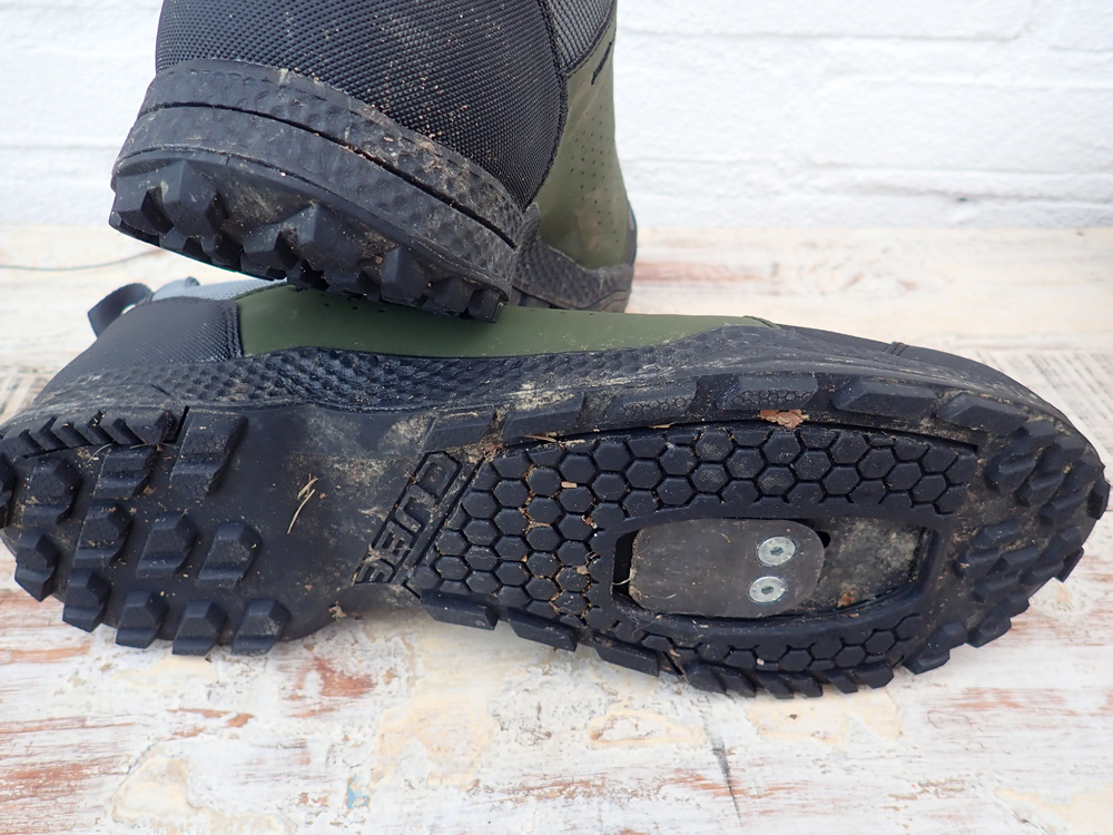 De zool van de schoen is gemaakt uit EVA schuim en soepel rubber. Het rubber van de schoenzool in combinatie met het EVA schuim maakt de schoen soepel genoeg om er een flinke wandeling mee te maken zonder last van je voeten te krijgen. Het profiel is vlak rondom de schoenplaat maar aan de voor-, achter- en zijkant is het profiel gemaakt voor stevig off-road wandelen. Genoeg grip in je schoenen als je een stuk omhoog moet klauteren met de bike in je nek. En dat maken we tijdens onze bike-vakanties toch redelijk vaak mee.