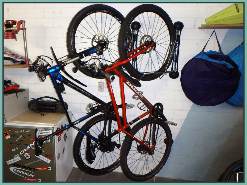 Iedereen kent de situaties wel. Je hebt eigenlijk net genoeg ruimte om je bikes netjes te stallen maar kunt daarna je schuur niet meer in. Wij monteerden de Steadyrack Classic en Fender en hingen de fietsen op.